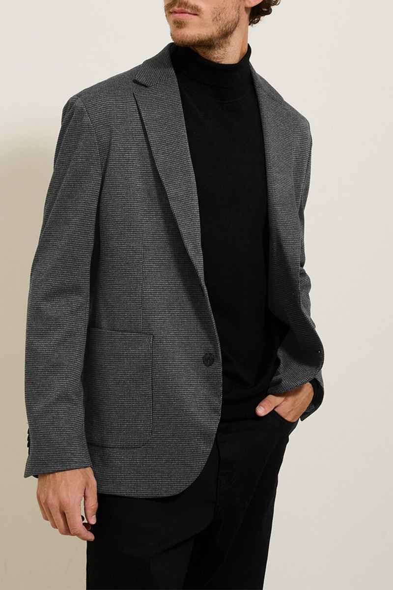 Ce blazer à carreaux ajoutera une touche d'élégance décontractée à votre garde-robe. Son motif pied de puce et sa matière en maille lui confèrent un look moderne et tendance.