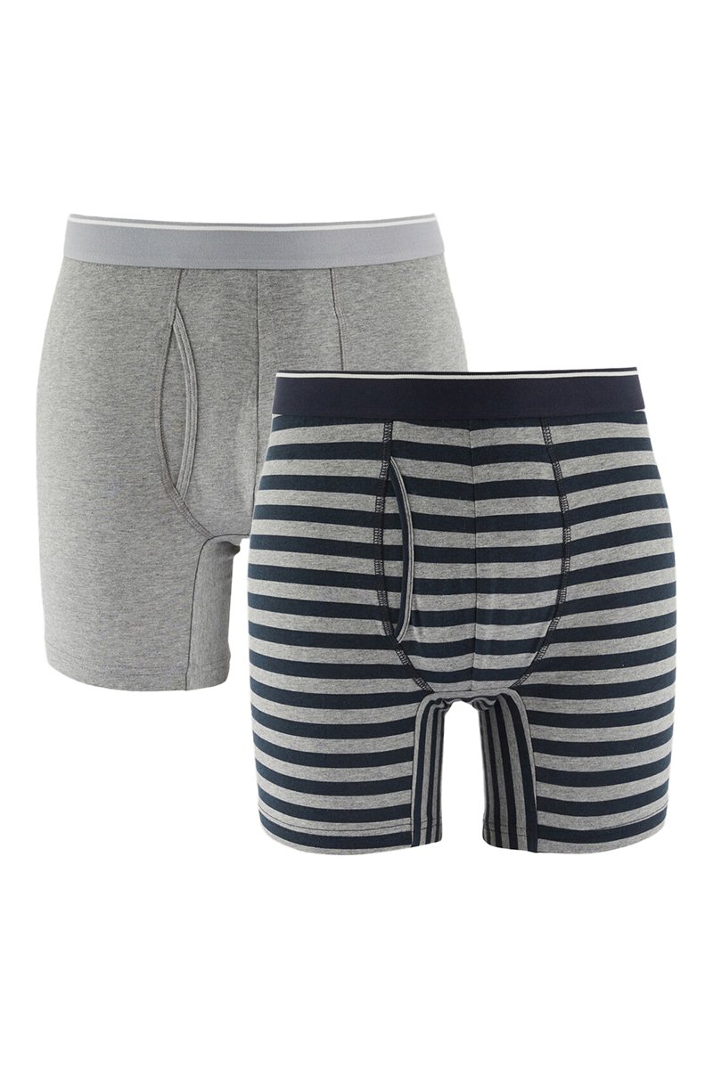 2 boxers dont 1 à motifs à rayures.