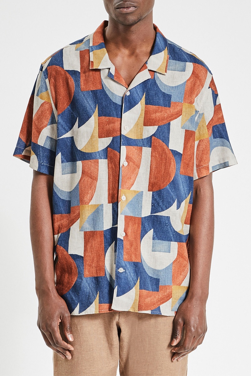 Chemisette regular en lin - Bleu cobalt et rouge brique
