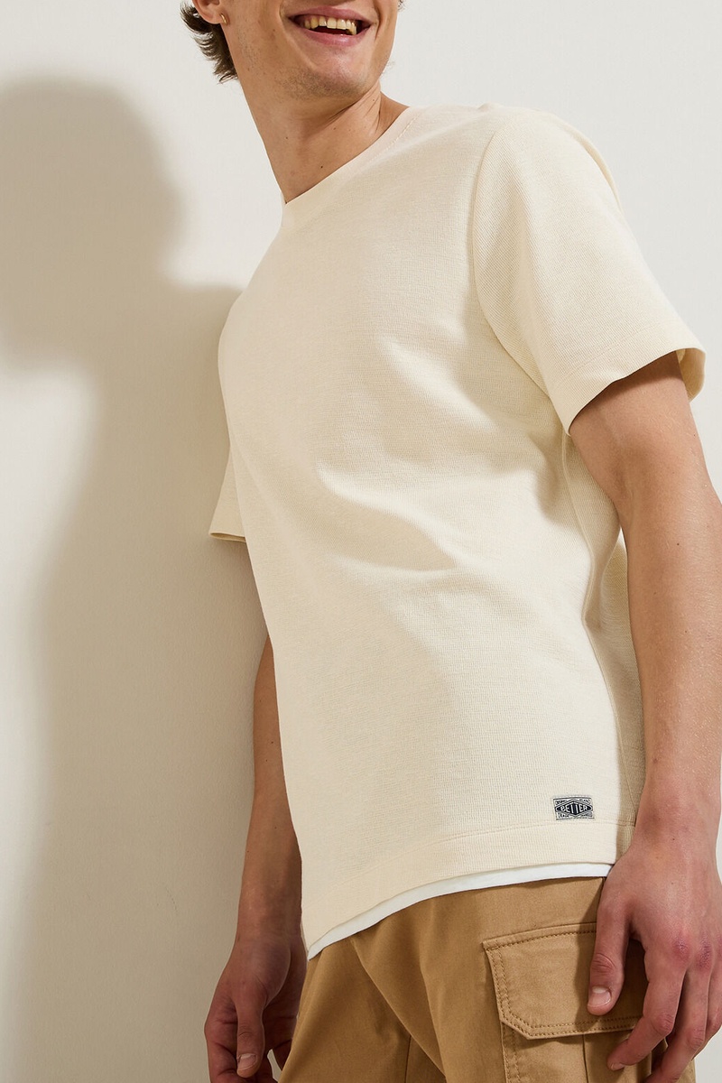 Doux, solide et stylé, ce tee-shirt en maille reliefée a tout ce qu'il faut pour un look décontracté !