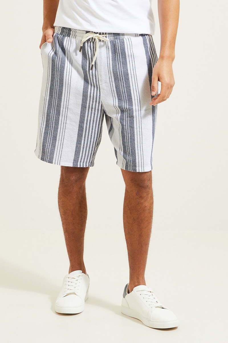 Ce bermuda rayé et reliéfé à taille élastiquée allie confort et légèreté, parfait pour cet été.
