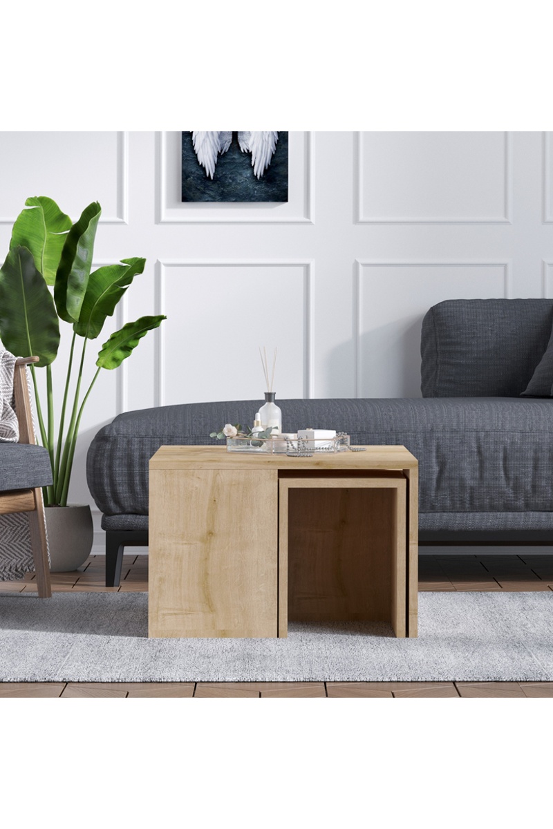 Les tables d'appoints se rangent dans la table basse.