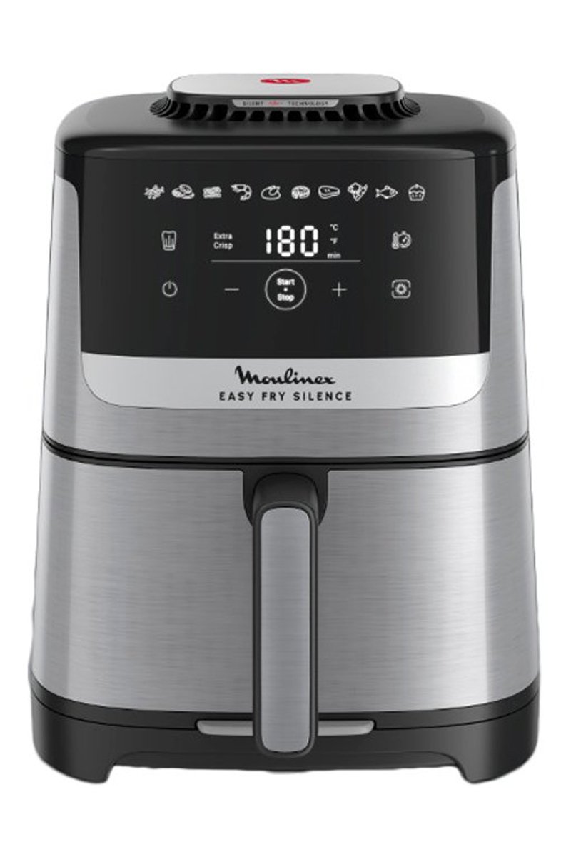 Profitez d'une cuisson sans stress grâce au air fryer le plus silencieux. Il est équipé de la technologie exclusive Silence de Moulinex pour une expérience de cuisson inégalée, du système Easy Clean & Store pour un nettoyage sans effort, de 10 programmes intuitifs, de la technologie Extra Crisp et d'une grille en fonte pour faire griller et marquer vos viandes et poissons.