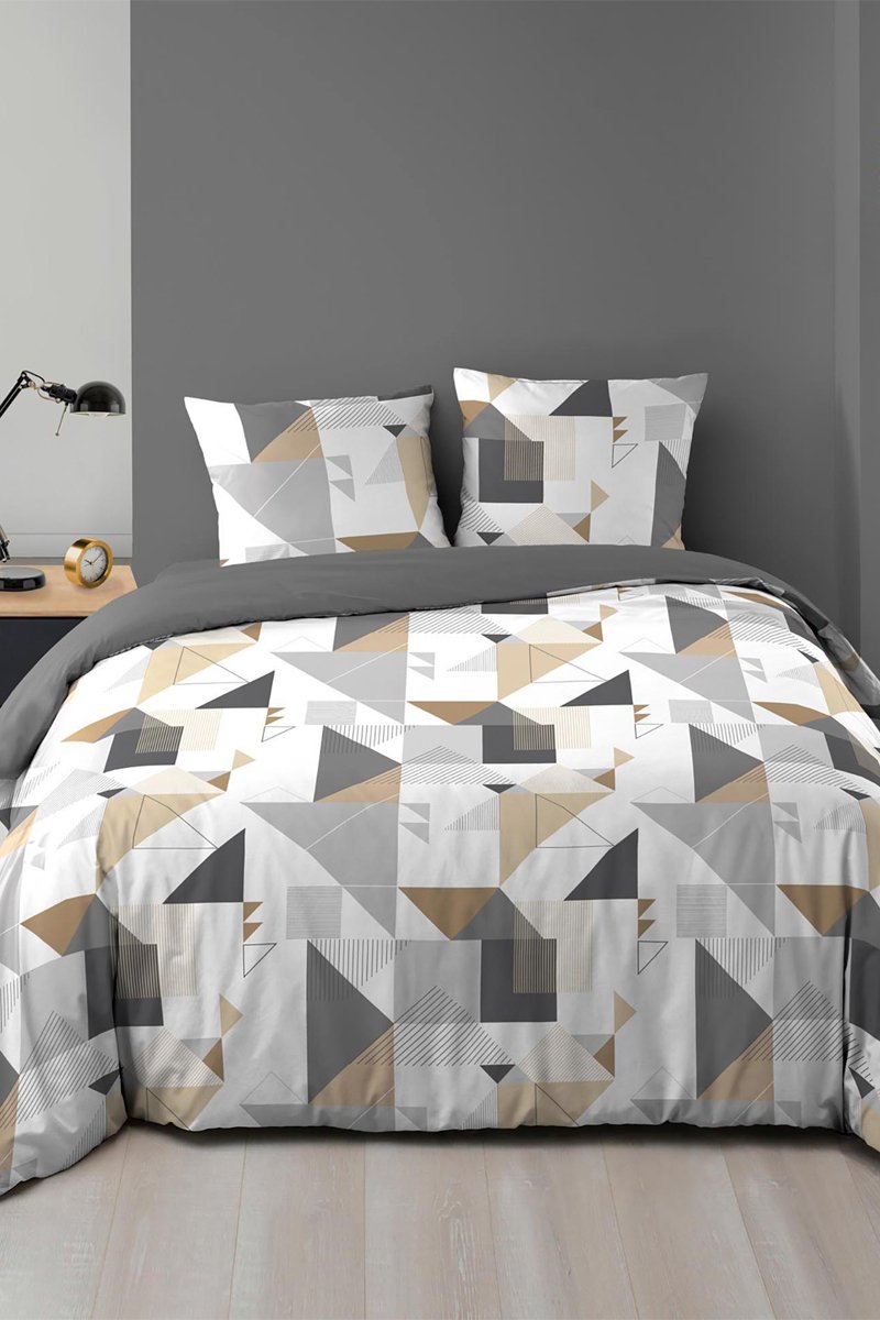 Parure de couette Trigone - Gris et blanc