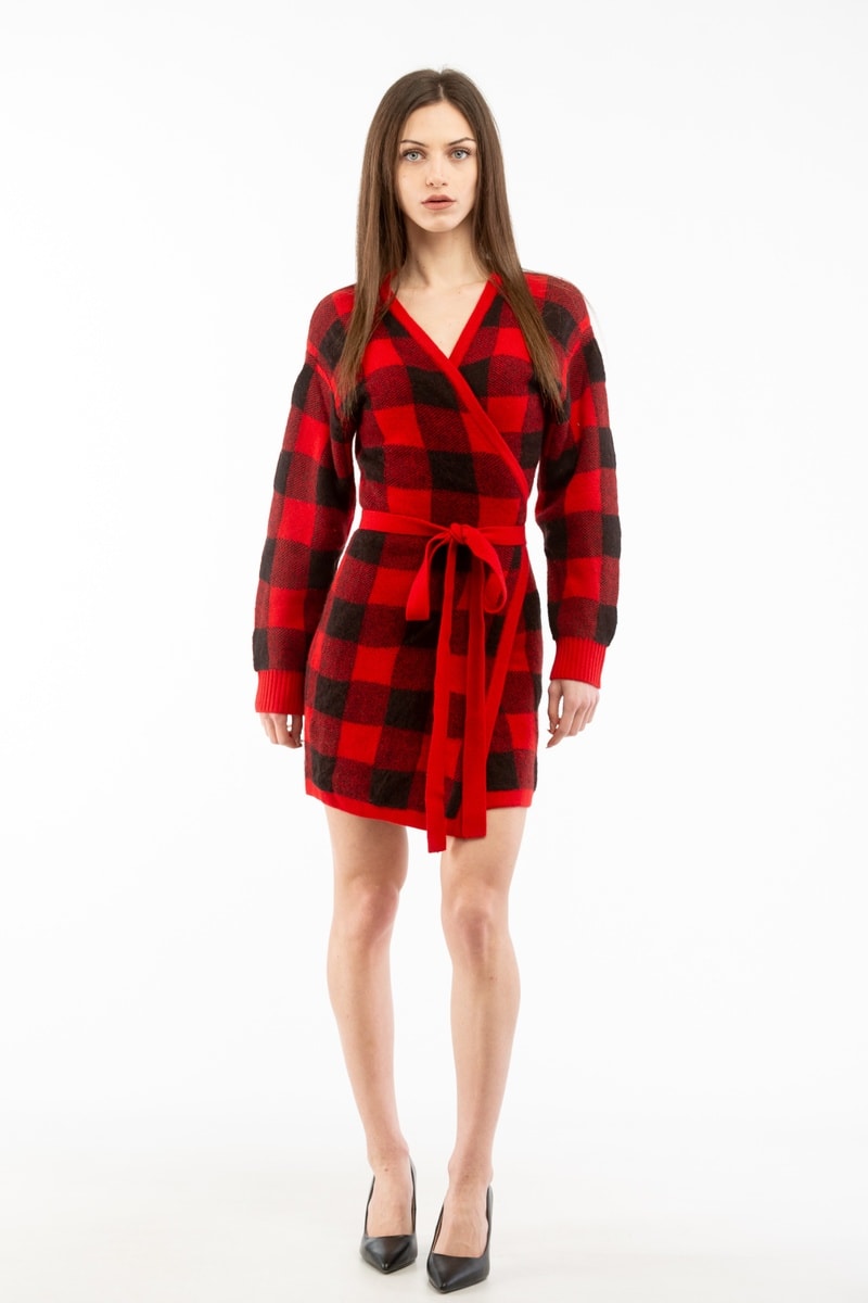 Robe portefeuille en laine et cachemire - Rouge et noir