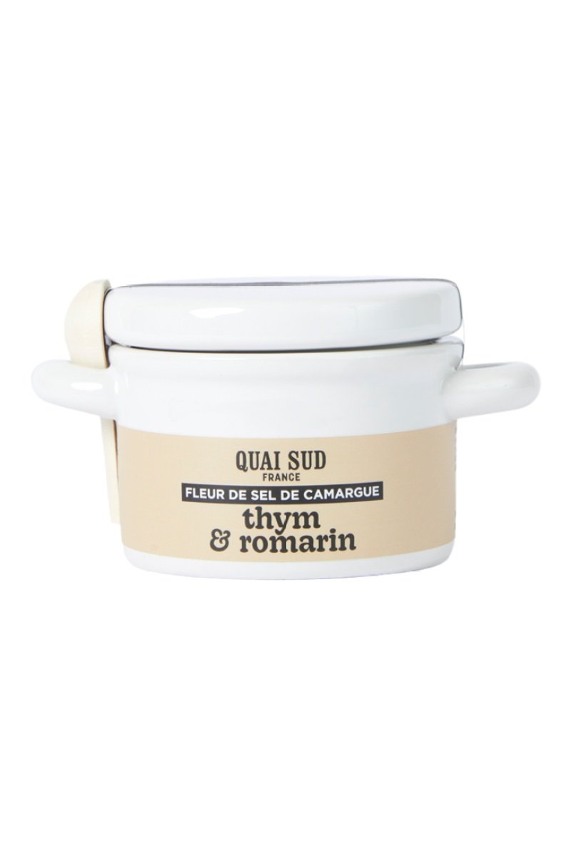 Ingrédients : fleur de sel de Camargue igp 96%, thym 1,9 %, romarin 1,9 %. Origine Provence