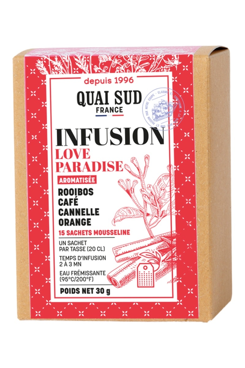 Infusion de rooibos aux notes chaudes de café et d’épices… Un voyage immédiat dans un paradis d’amour.