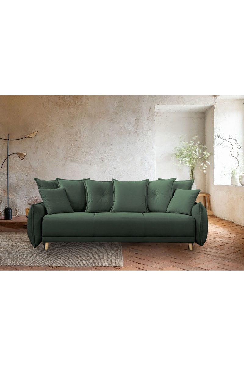 Canapé convertible Lazy Lukka - Vert bouteille - 3 places - En toucher velours côtelé - Dimensions couchage 140 x 190 cm