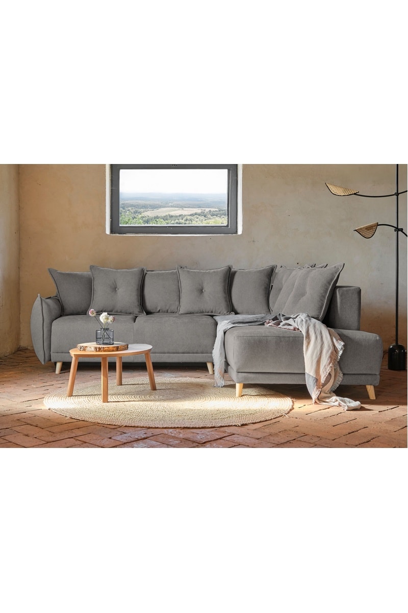 Canapé d’angle droit convertible Lazy - Gris foncé - 6 places - En polyester - Dimensions couchage 140 x 210 cm