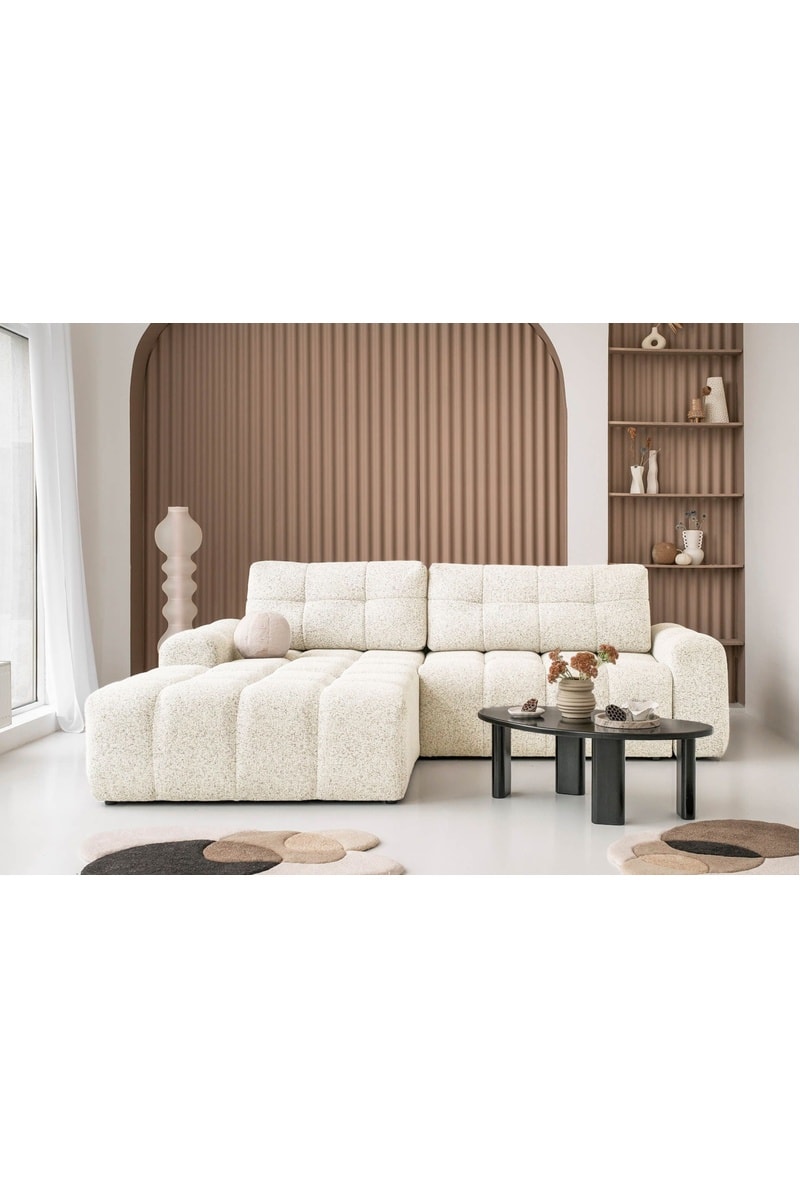 Canapé d’angle convertible Lulu - Beige - 4 places - - En polyester - Dimensions couchage 120 x 215 cm