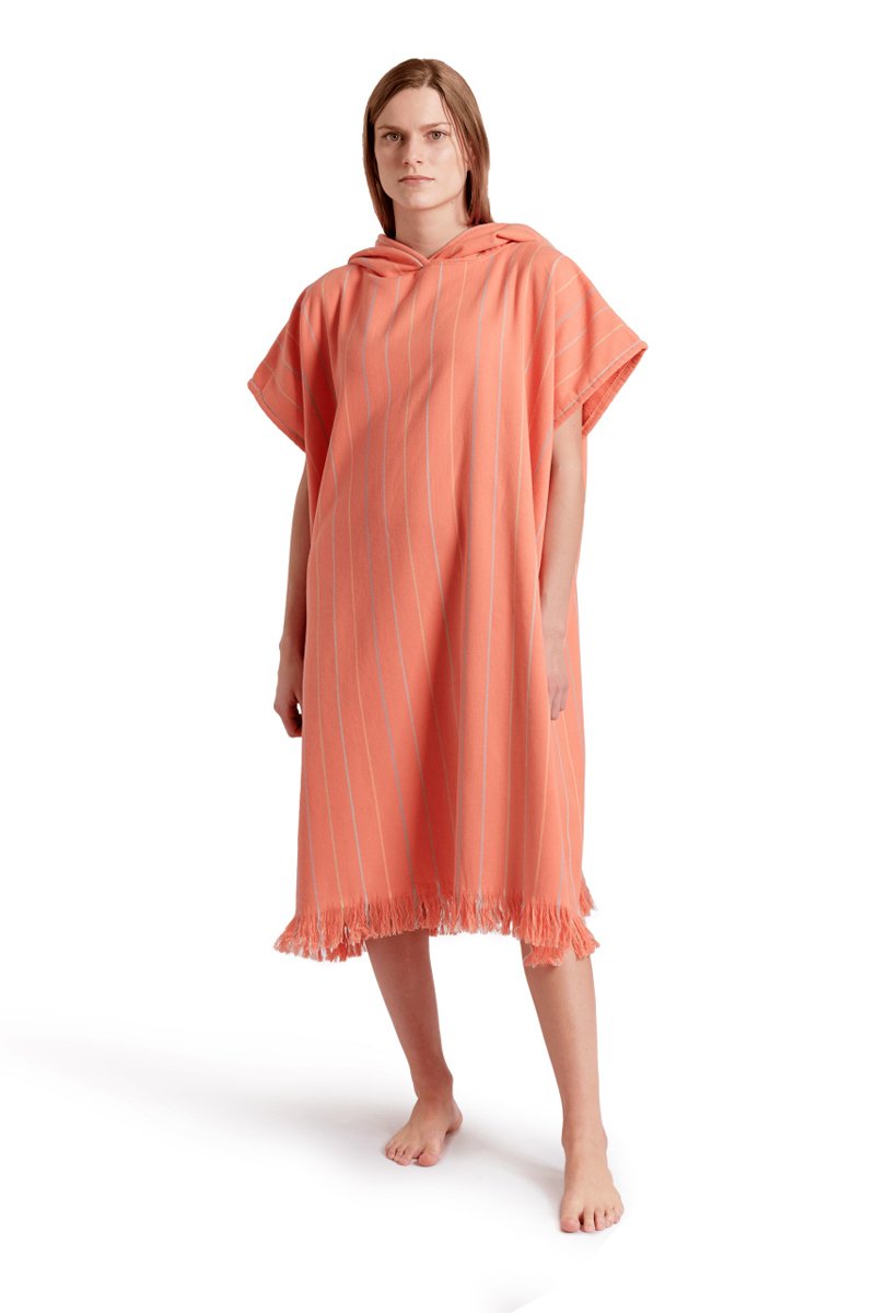 Poncho à capuche - Orange et bleu clair