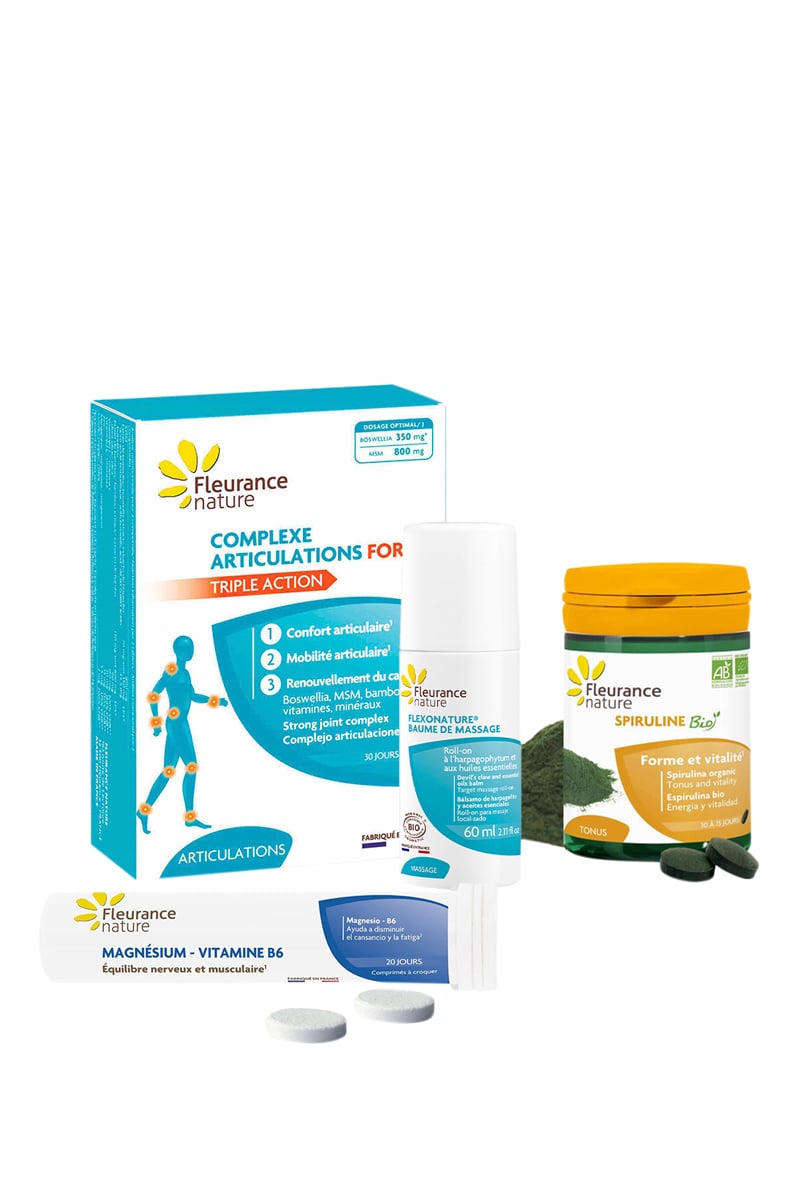La formule triple action du COMPLEXE ARTICULATIONS FORT vient en aide aux articulations qui se fragilisent et s’usent avec le temps. Elle permet à la fois de réduire les sensations de gênes, maintenir la mobilité articulaire et favoriser le renouvellement du cartilage. Pour une efficacité optimale, sa formule unique hautement dosée réunit des extraits végétaux (boswellia, bambou), des vitamines (C, E), des minéraux (cuivre, zinc, manganèse) et du MSM.