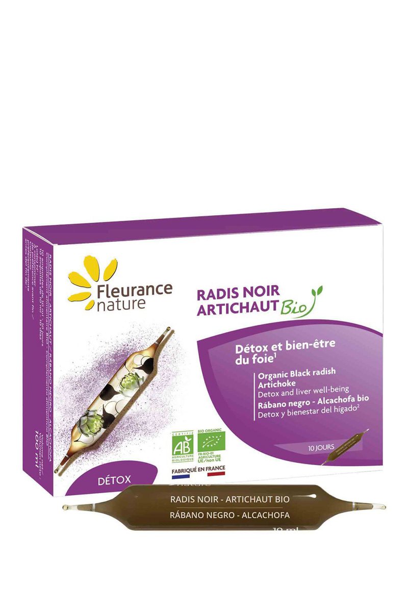 Complément alimentaire détox à base de jus de radis noir et d’un extrait de feuilles d’artichaut.