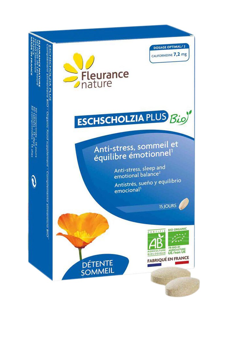 Ingrédients : Ingrédients pour 2 comprimés : Extrait de parties aériennes d’Eschscholzia californica* 1200 mg, antiagglomérant : carbonate de magnésium, fibres de gomme d’acacia*, huile de tournesol*. *100% des ingrédients d’origine sont obtenus selon le mode de production biologique.