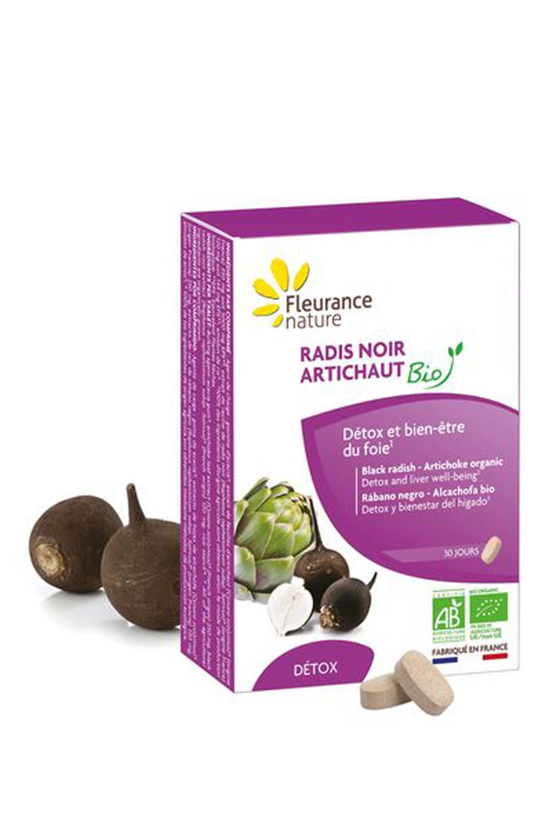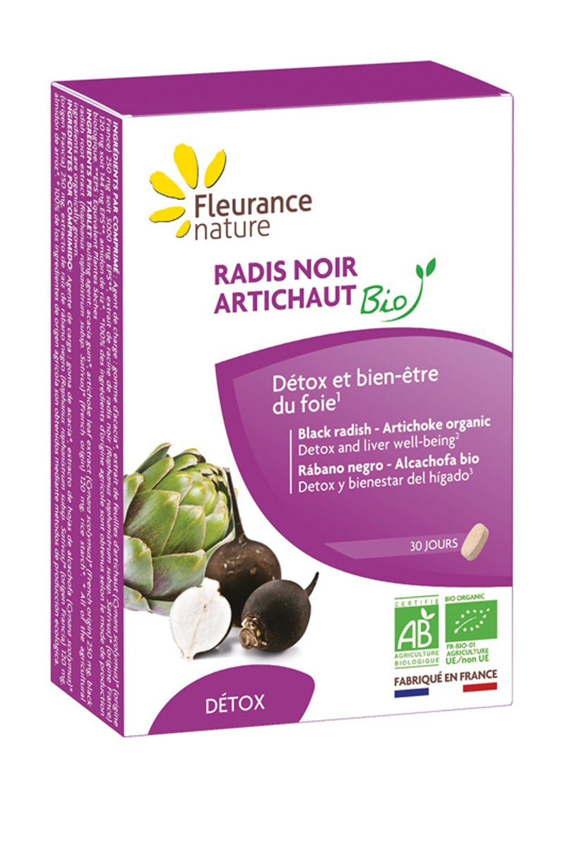Complément alimentaire détox à base d’extraits de feuilles d’artichaut et de racines de radis noir issus de l’agriculture biologique.