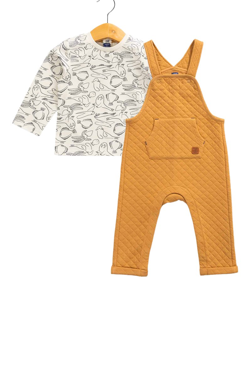 Salopette et t-shirt - Moutarde et écru