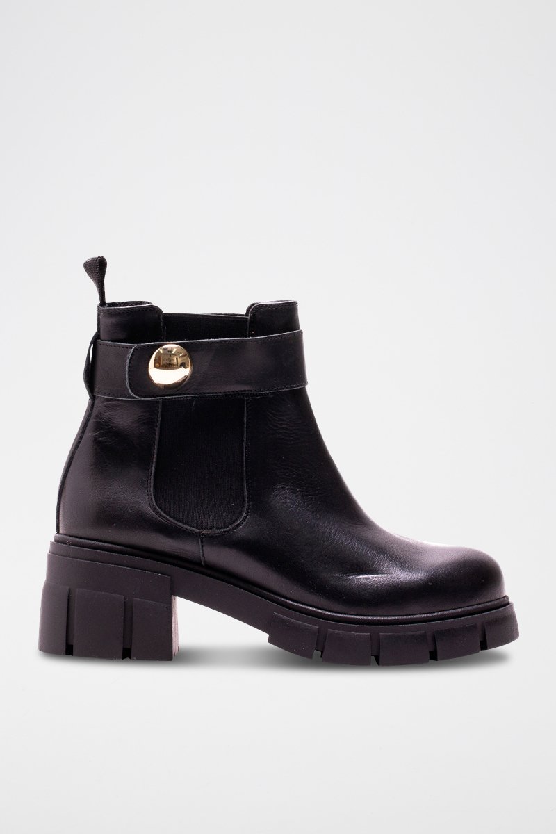 Bottines à talons en cuir.