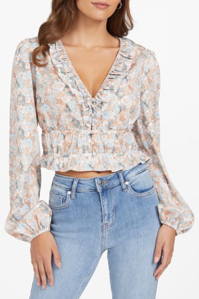 Chemisier à manches longues bouffantes élastiques.