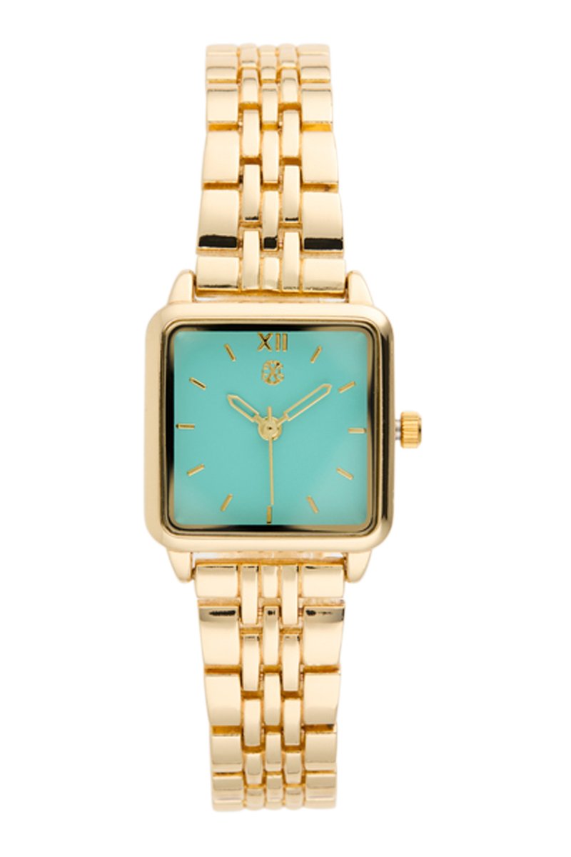 Montre à quartz en alliage - Doré et turquoise