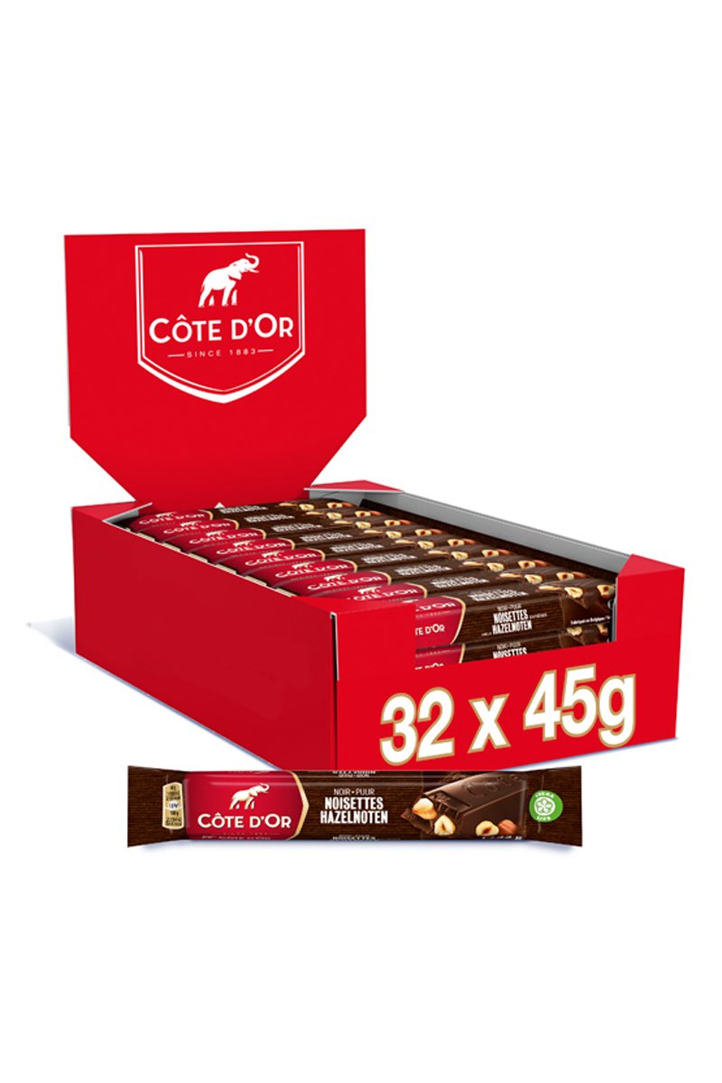 Barres chocolat noir et noisettes entières Côte d'Or - 32 x 45 g