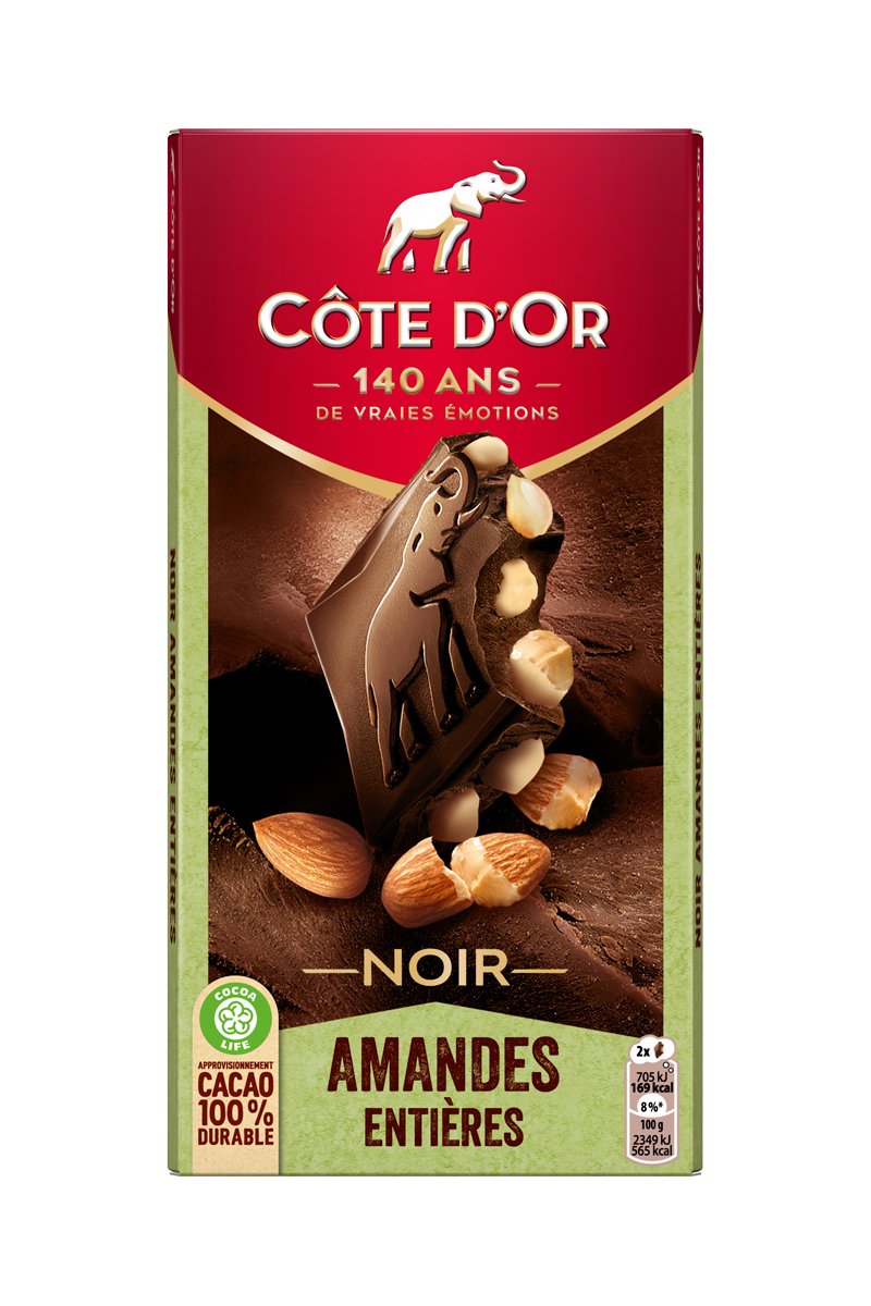 Tablette Côte d'Or Chocolat noir Amandes Entières.