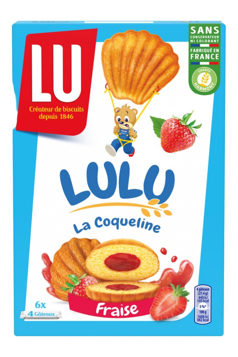 Ingrédients : Sirop de glucose-fructose, farine de blé 24,1 %, sucre, purée de fraises 16,7 %, oeufs 14,9 %, huile de palme, stabilisant (glycérol), poudre à lever (carbonate acide d'ammonium, diphosphate disodique, carbonate acide de sodium), gélifiant (pectines), émulsifiants (E471, lécithine de tournesol), acidifiant (acide citrique), arômes, sel.