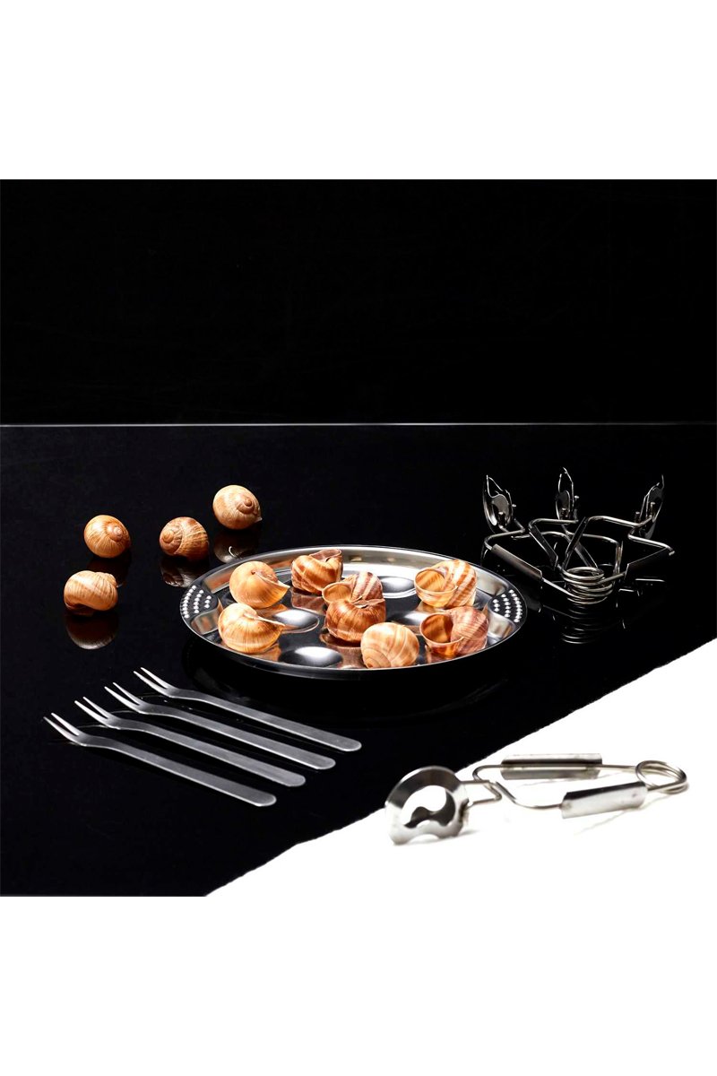 Service à escargots en acier inoxydable comprenant :