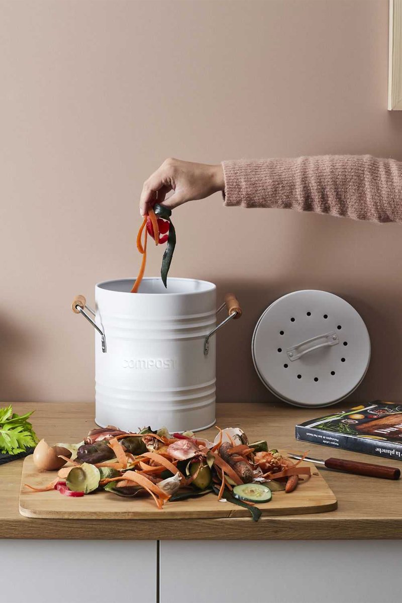 Collectez les épluchures de vos fruits et légumes, les restes de repas, le marc de café... puis videz la poubelle au composteur.
