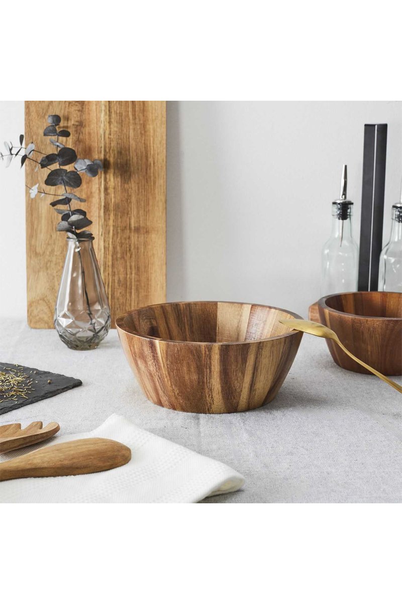 Saladier en acacia. Incompatibilité lave-vaisselle et micro-ondes.