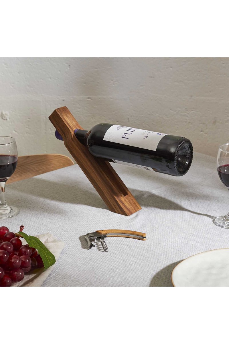 Support à bouteille et tire-bouchon en bois d'acacia