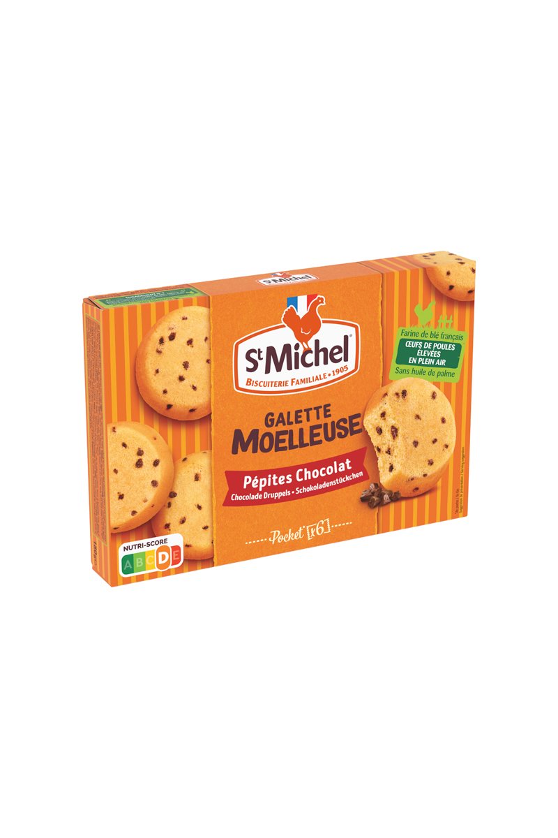 3 galettes moelleuses nappées chocolat au lait et 3 galettes moelleuses pépites chocolat St Michel - 6 x 180 g
