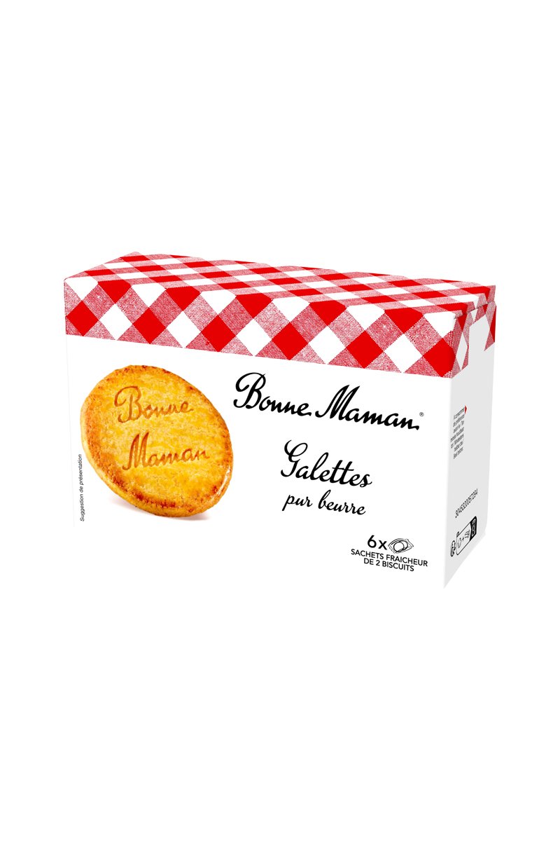 Bonne Maman met tout son amour dans la préparation de sa recette traditionnelle de galettes pur beurre qui leur confère une texture croustillante et fondante. Sans colorant et fabriquées en France. Pour préserver toute leur saveur et leur croustillance, nos galettes Bonne Maman sont emballées avec soin dans leur petit sachet fraicheur.