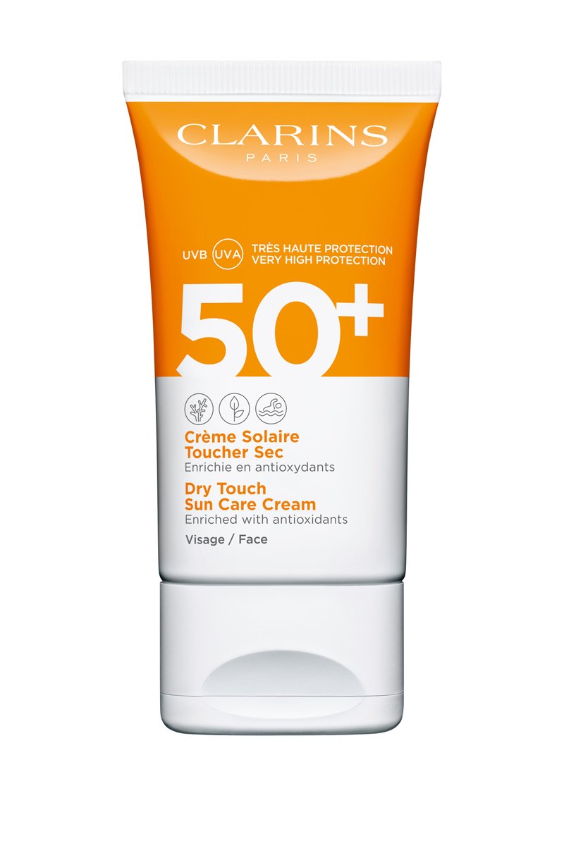 Crème Solaire Toucher Sec SPF 50 pour visage.