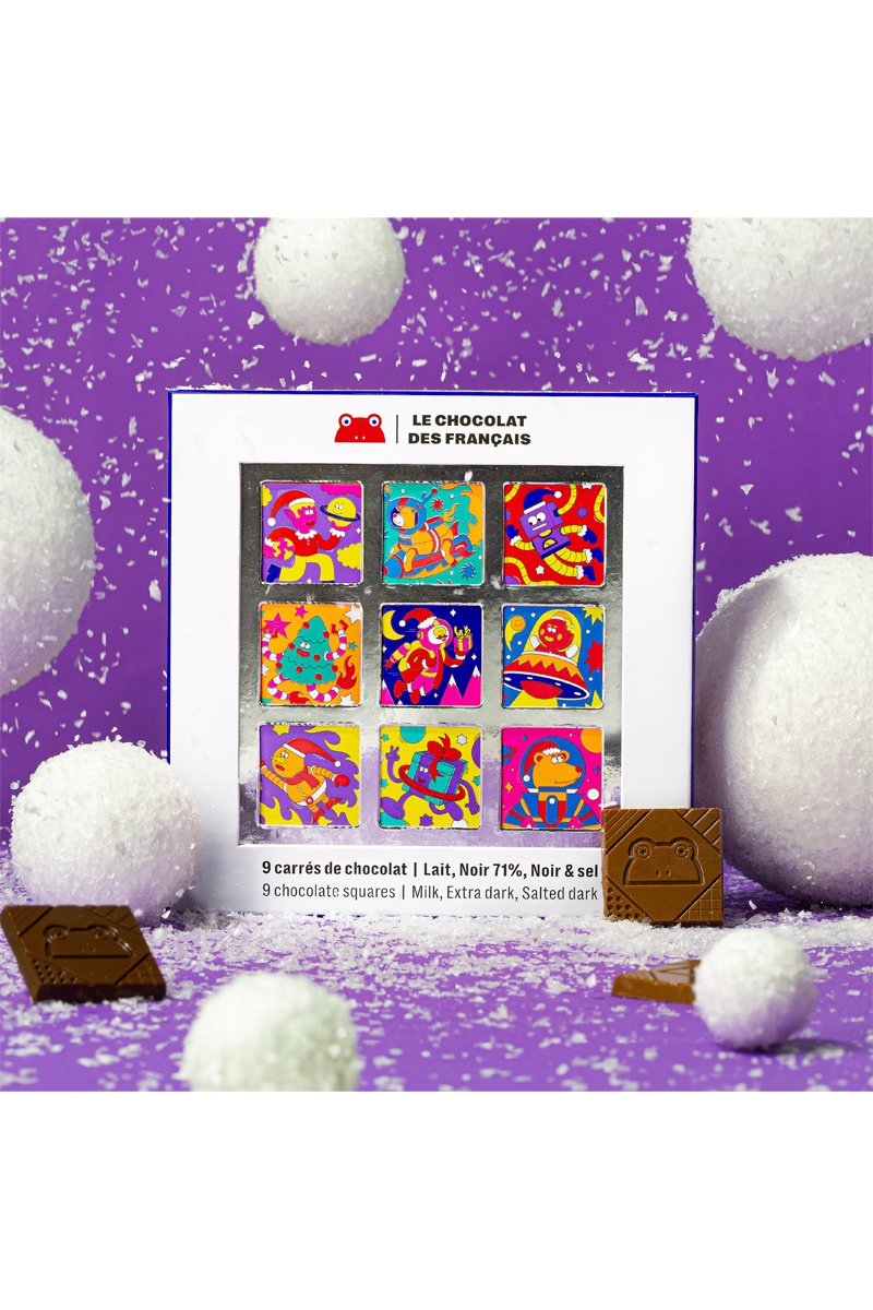 Ce beau coffret est garni d’une sélection de 9 carrés de chocolat. 3 recettes, 9 illustrations.