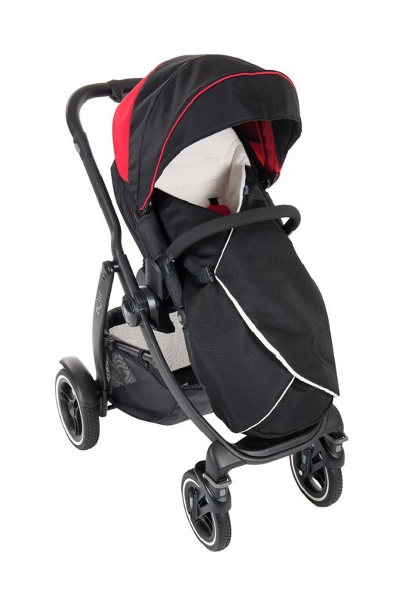 Cette poussette est également livrée avec une chancelière de luxe et une housse de pluie.