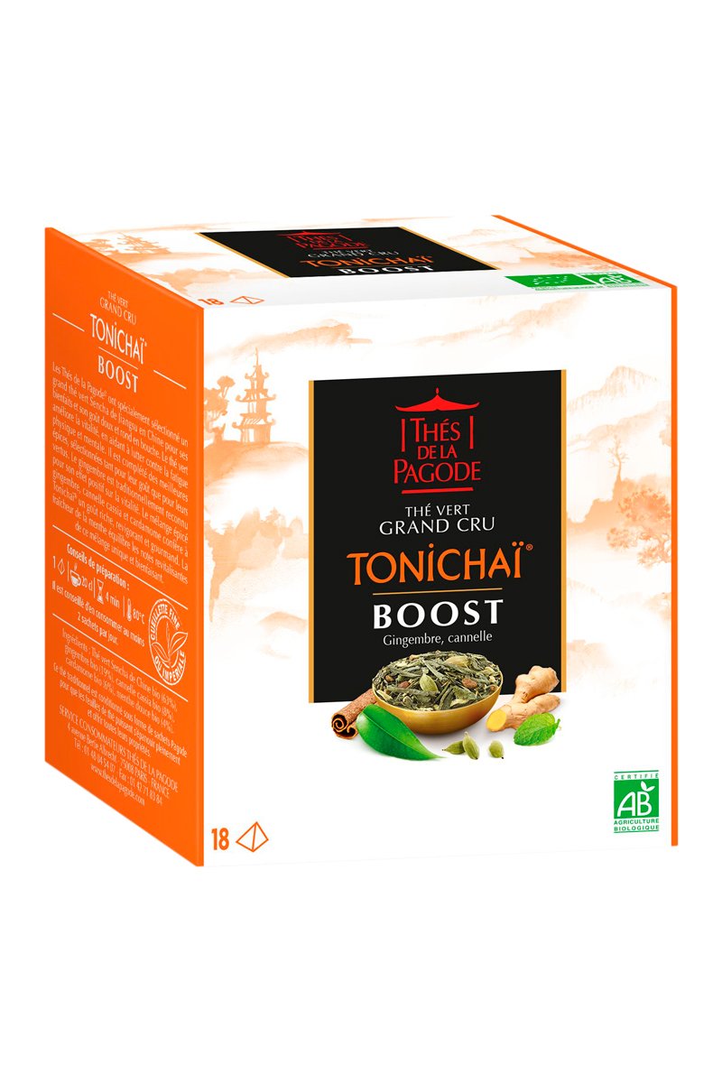 Tonichaï® est un thé épicé qui vous procurera un effet "boost" grâce aux vertus combinées du thé vert Sencha, du gingembre, de la cannelle et de la cardamome tout en vous offrant un goût aux notes gourmandes et un parfum à la fois doux, envoûtant, vif et frais.