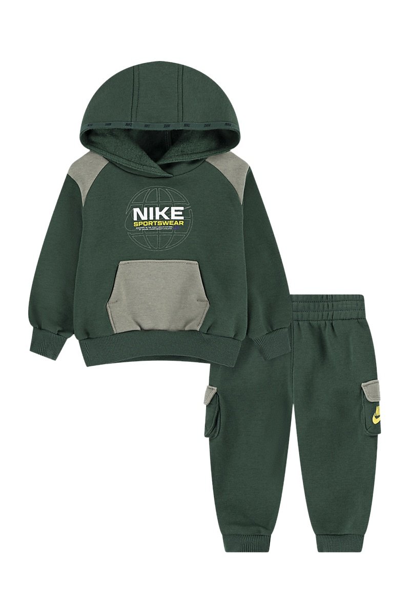 Sweat à capuche et pantalon polaires - Vert foncé et gris