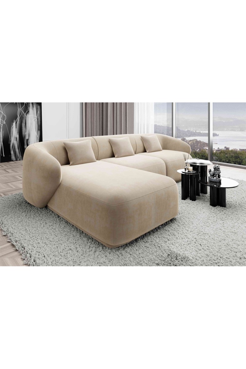 Canapé d'angle gauche Maitano - Crème - 5 places - Tissu toucher velours