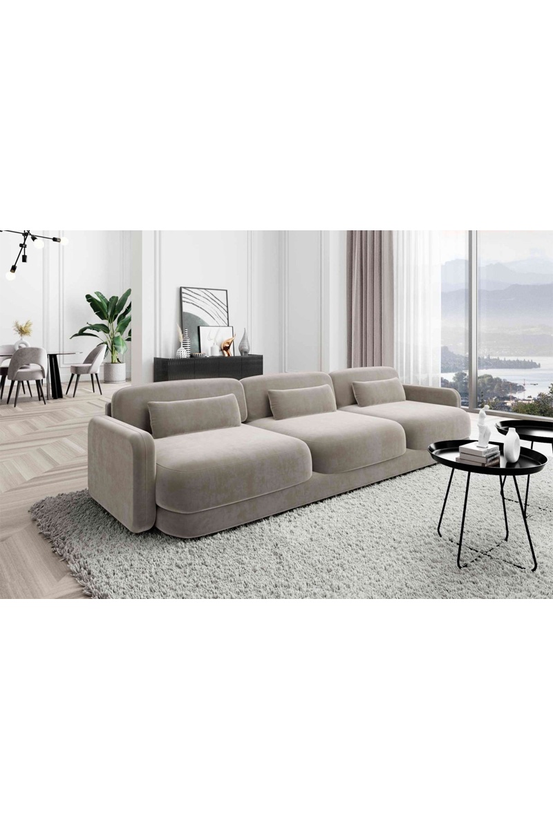 Canapé droit Migala - Beige foncé - 3 places - Tissu velours