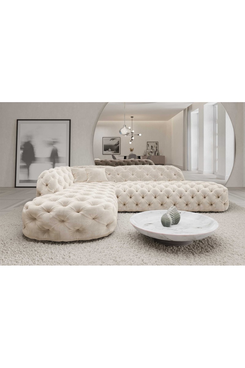 Canapé d'angle gauche Honey - Crème - 6 places - Tissu toucher velours