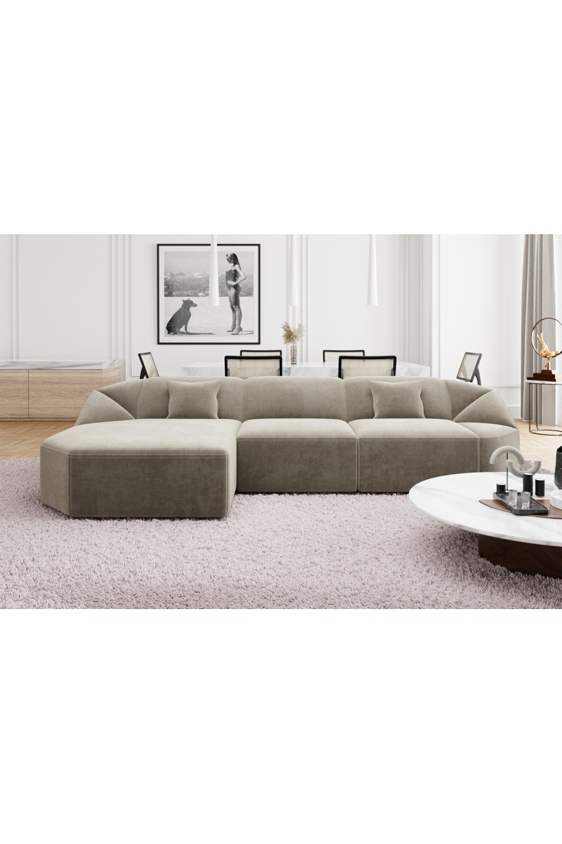 Canapé d'angle gauche Laguna - Beige foncé - 5 places - Toucher velours