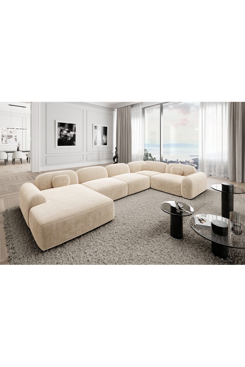 Canapé d'angle droit panoramique Labucca - Crème - 7 places - En velours