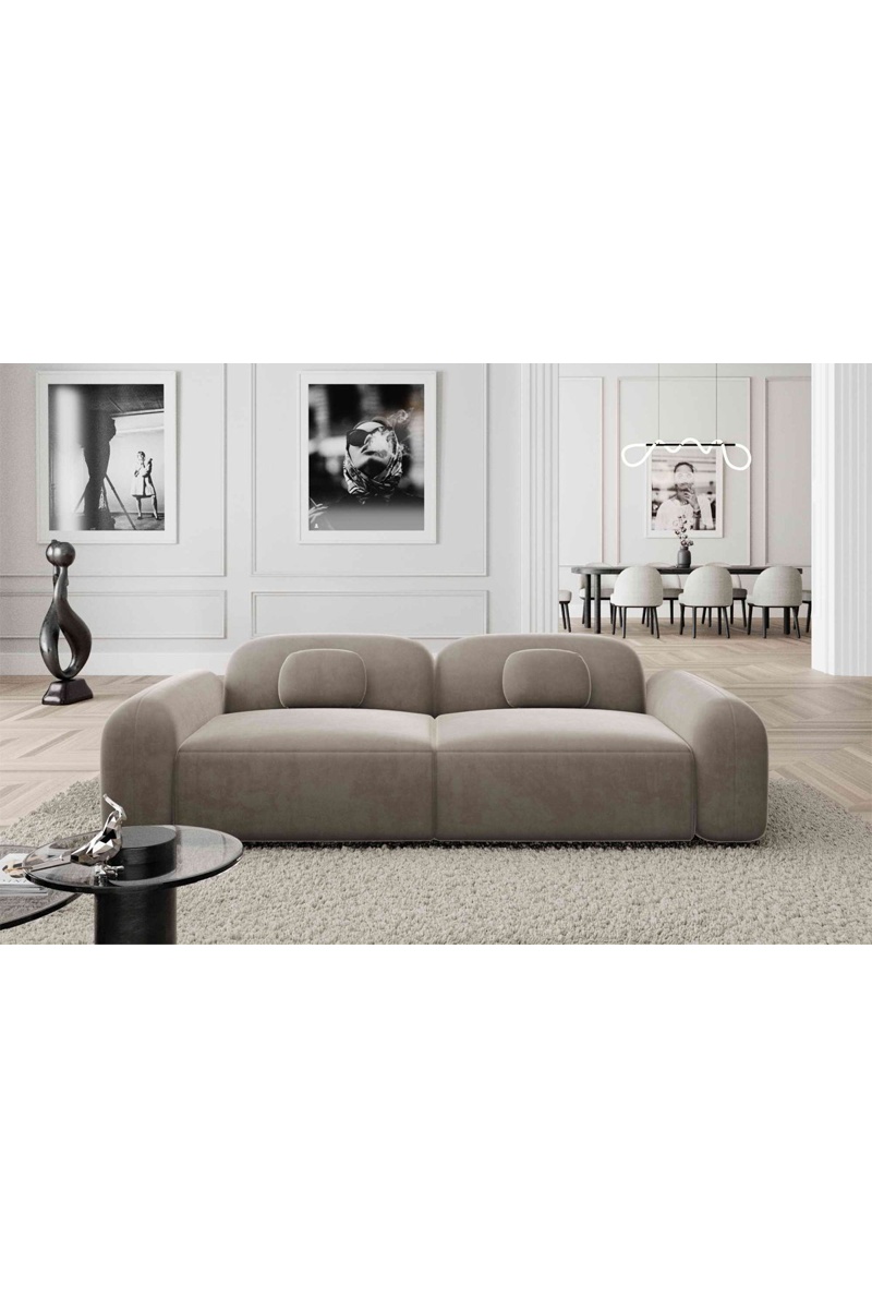 Canapé droit Labucca - Beige foncé - 3 places - En tissu velours