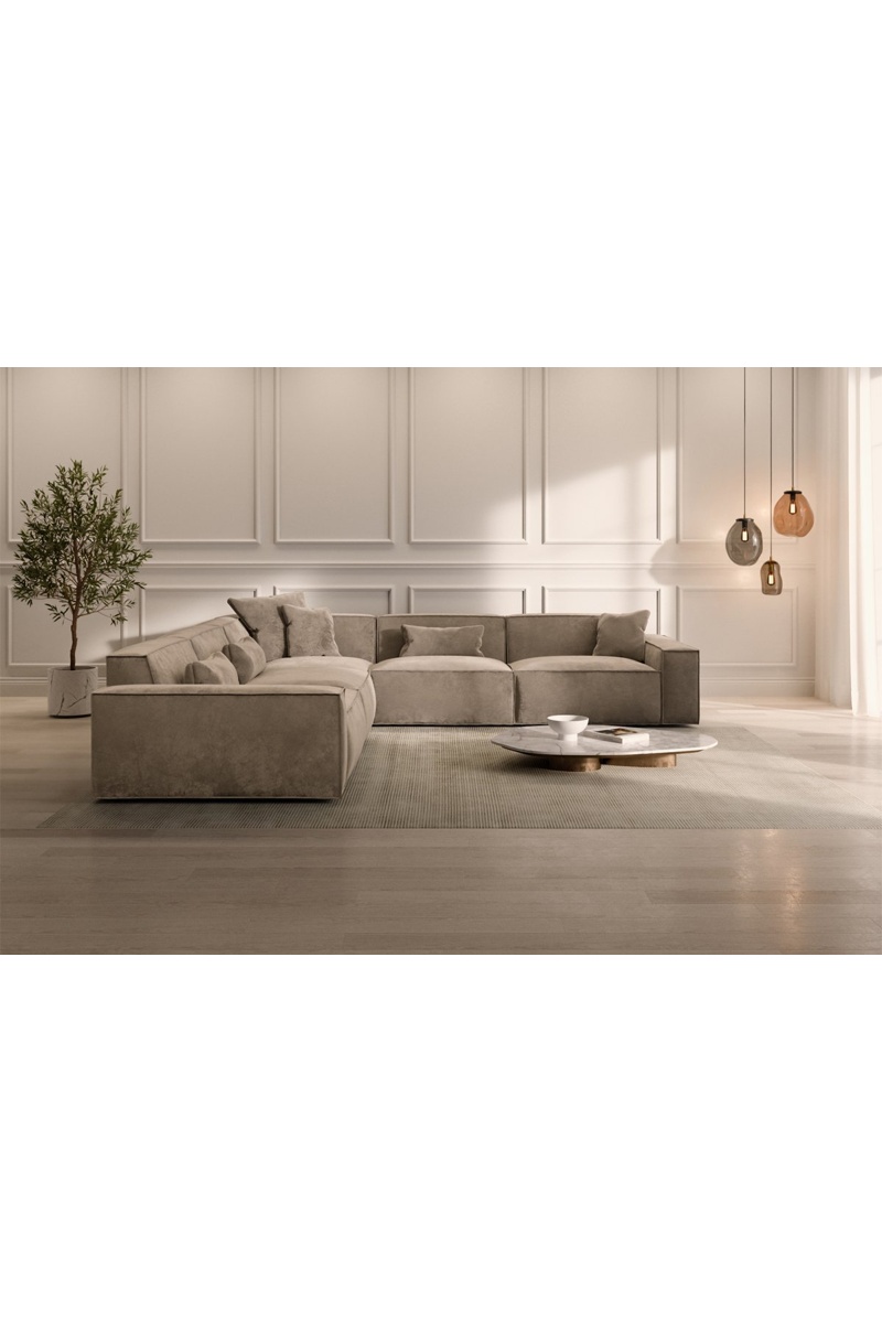 Canapé d'angle Lionel - Beige foncé - 6 places - En tissu toucher velours