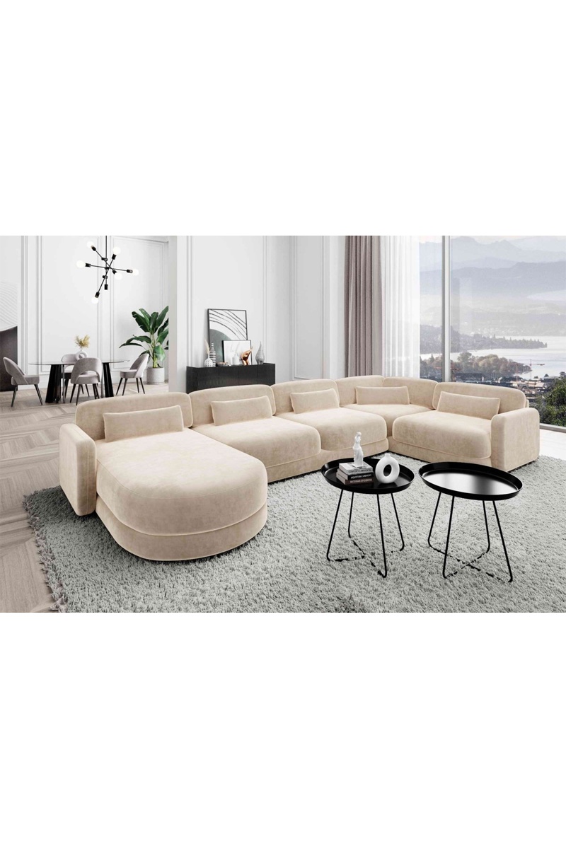Canapé d'angle droit panoramique Migala - Crème - 7 places - En velours