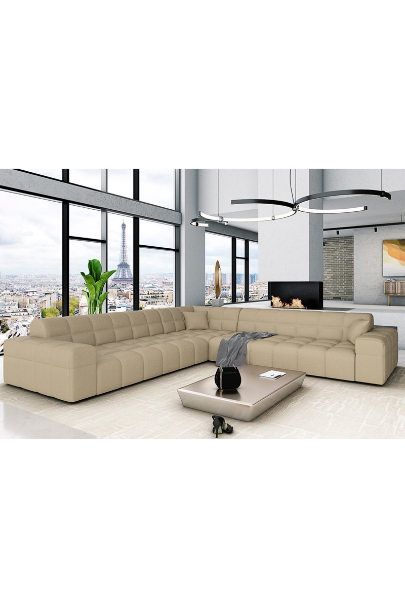 Canapé d’angle Cardano - Beige - 6 places - En cuir
