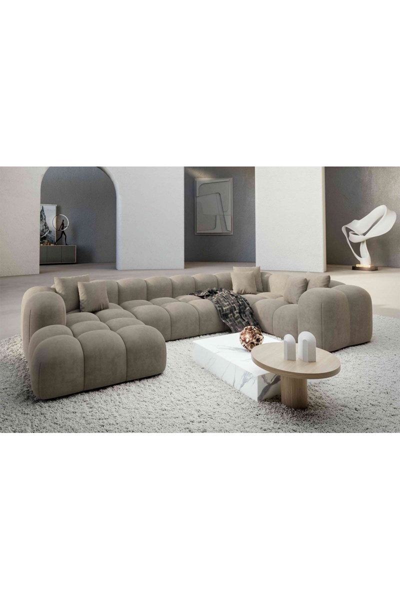 Canapé d'angle droit panoramique Nuvola - Beige foncé - 7 places - En velours