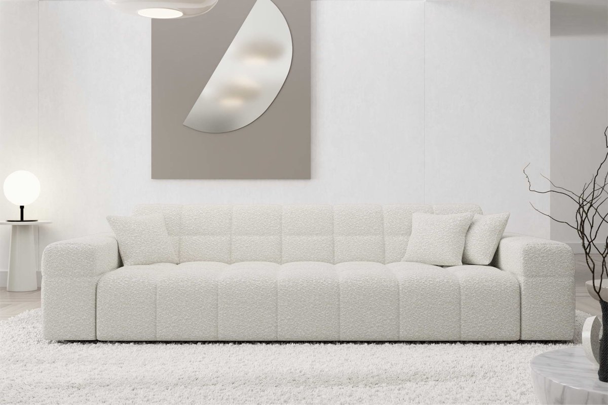 Canapé droit Cardano - Blanc - 3 places - Tissu bouclette