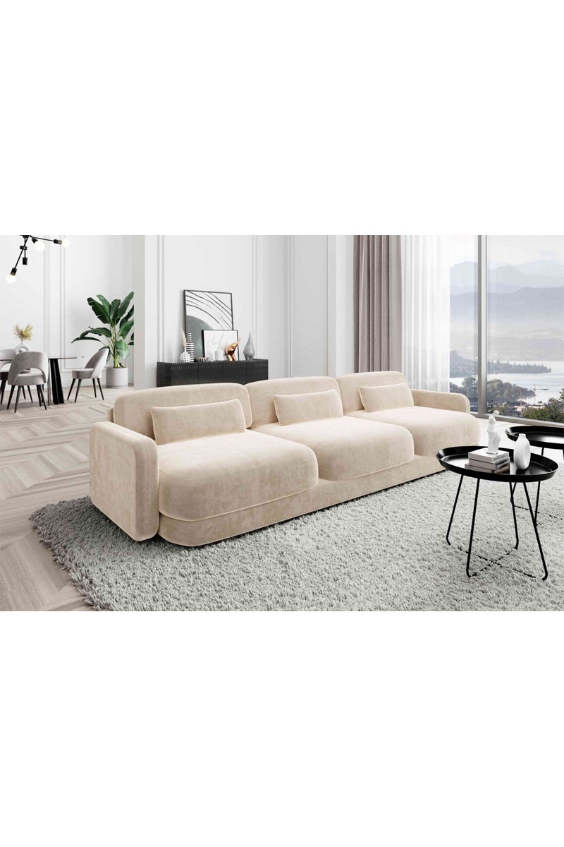 Canapé droit Migala - Crème - 3 places - Tissu velours