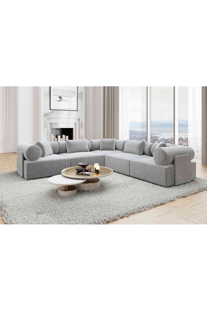 Canapé d'angle Form Ragusa - Gris clair - 6 places - Tissu toucher velours